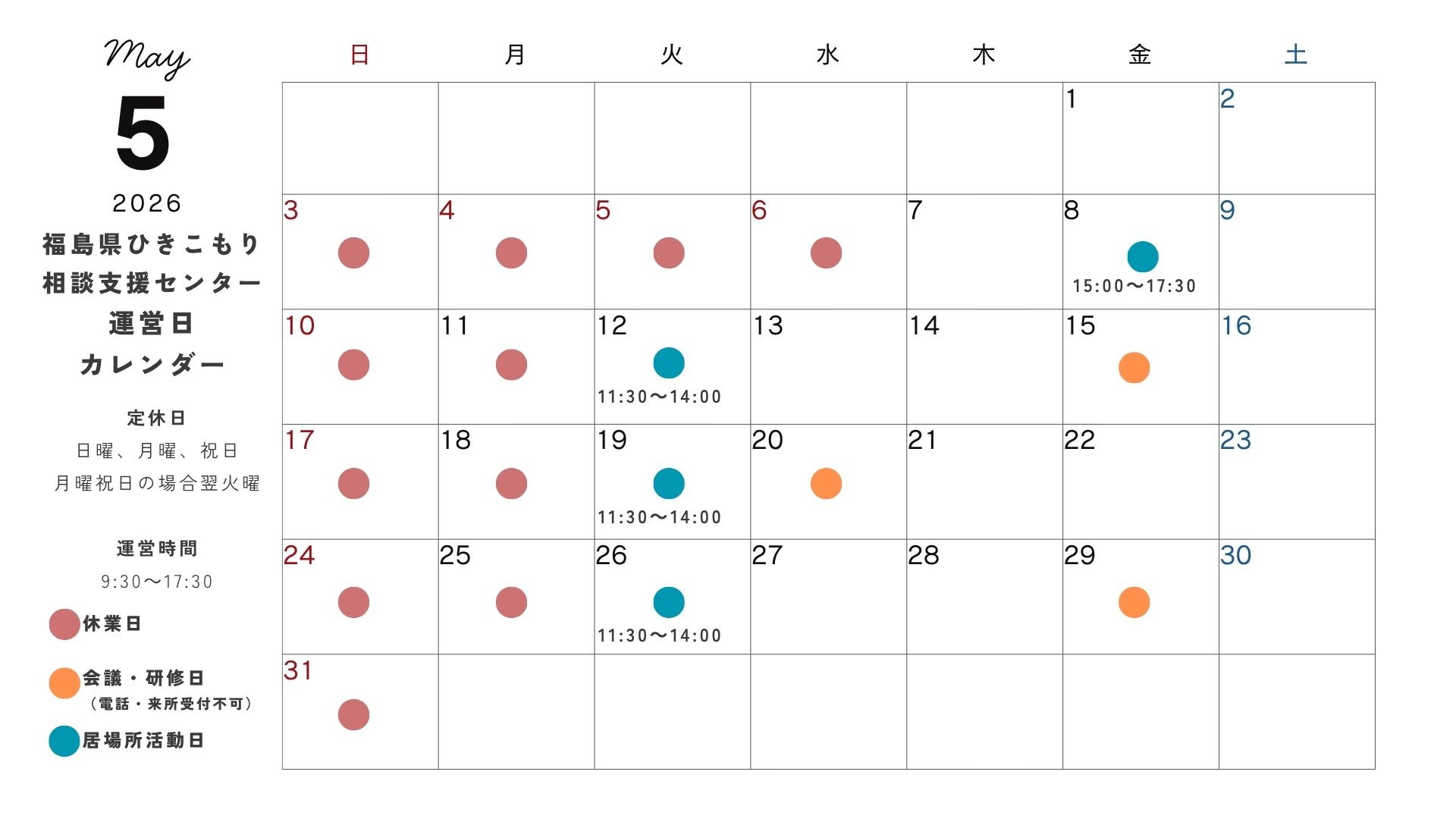 2026年5月の運営カレンダー